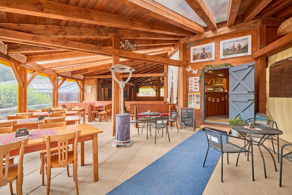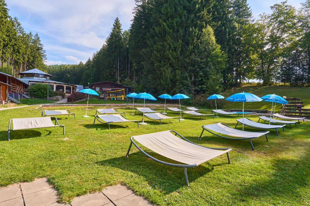 12-pokojová chata 356 m2 na 3 podlažích. Dostatek prostoru a světlý interiér, velmi komfortně a pěkně zařízeno: velký obývací pokoj s krbovými kamny, jídelním stolem a TV. Herna. Kuchyně (trouba, myčka, 4-plotýnková indukční varná deska, toustovač/topinkovač, varná konvice, mraznička, gril, elektrický kávovar). Vstup na terasu. 2x samostatné WC. Topení. V horním patře: 3x pokoj, každý pokoj s 1x